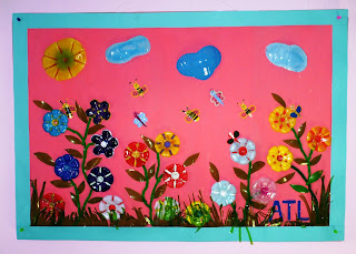 Decorações "ecológicas" para celebrar a Primavera realizadas a partir de garrafas de plástico.
